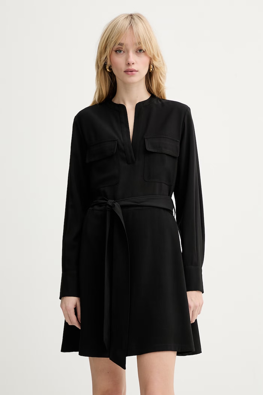 Dimensiunile disponibile sunt cele ale producatorul italian, raportate la dimensiunile europene standard. Marimea comandata poate diferi fata de cea inscriptionata pe eticheta (IT 38 / XXS = EU XS). Pentru a fi sigur, va rugam sa consultati tabelul cu marimi. - Fason in clos. - Model cu lungime mini. - Mâneci lungi. - Decolteu in V. - Model cu buzunare, decorat cu clape. - Curea textilă atașată. - Model fara captuseala. - Manșete cu nasturi. - Lungimea: 90 cm. - Lungimea manecii. 60 cm. - Latimea la subrat: 46 cm. - Dimensiunile date pentru marimea: 36.