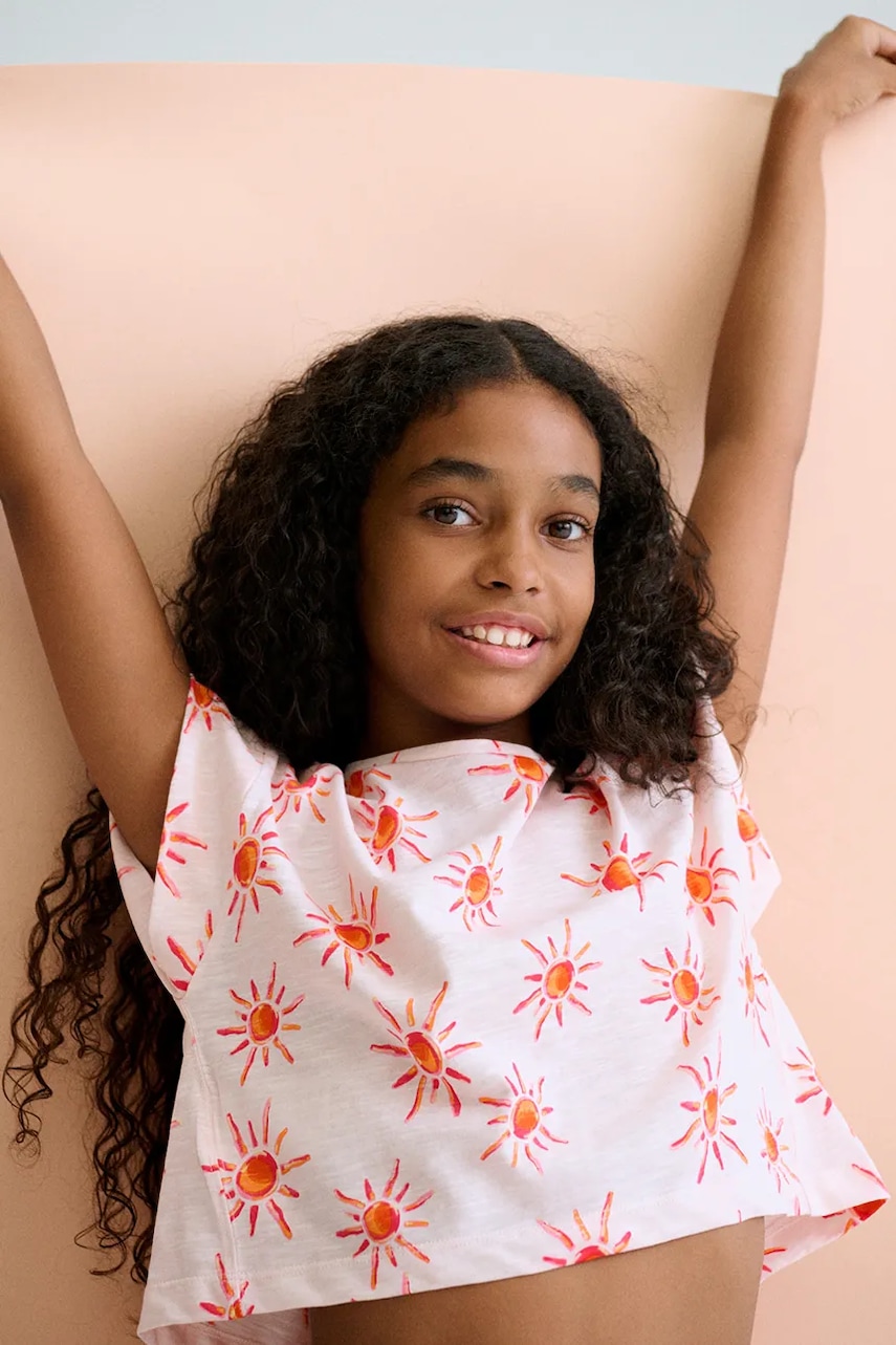 - Decolteu rotund. - Model cu imprimeu. - Fason lejer.