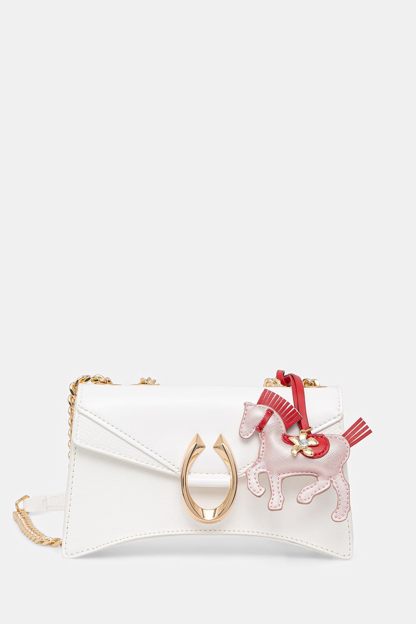 - Clapeta este fixată cu un magnet. - Nu incape format A4. - Geanta textila inclusa protejeaza produsul de praf. - Curea nedetasabila fara ajustare. - Detaliu decorativ. - Buzunar interior cu fermoar. - Lungimea curelei: 120 cm. - Adancimea: 5 cm. - Inaltimea: 12,5 cm. - Latimea la baza: 20,5 cm.